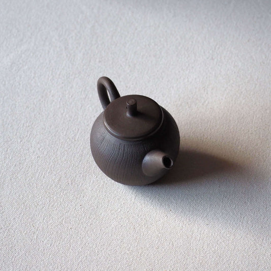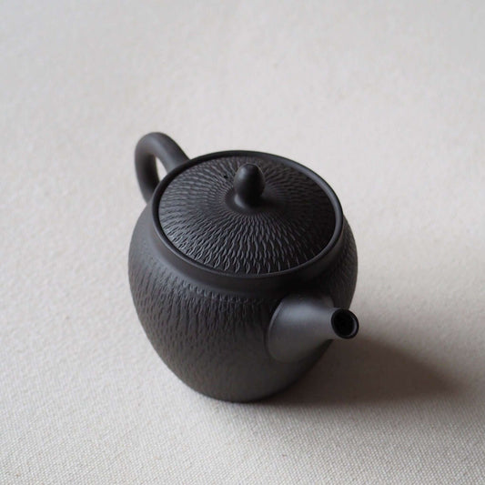 常滑焼 甚秋陶苑(伊藤成二)作 黒嵐絞り茶壺 170ml