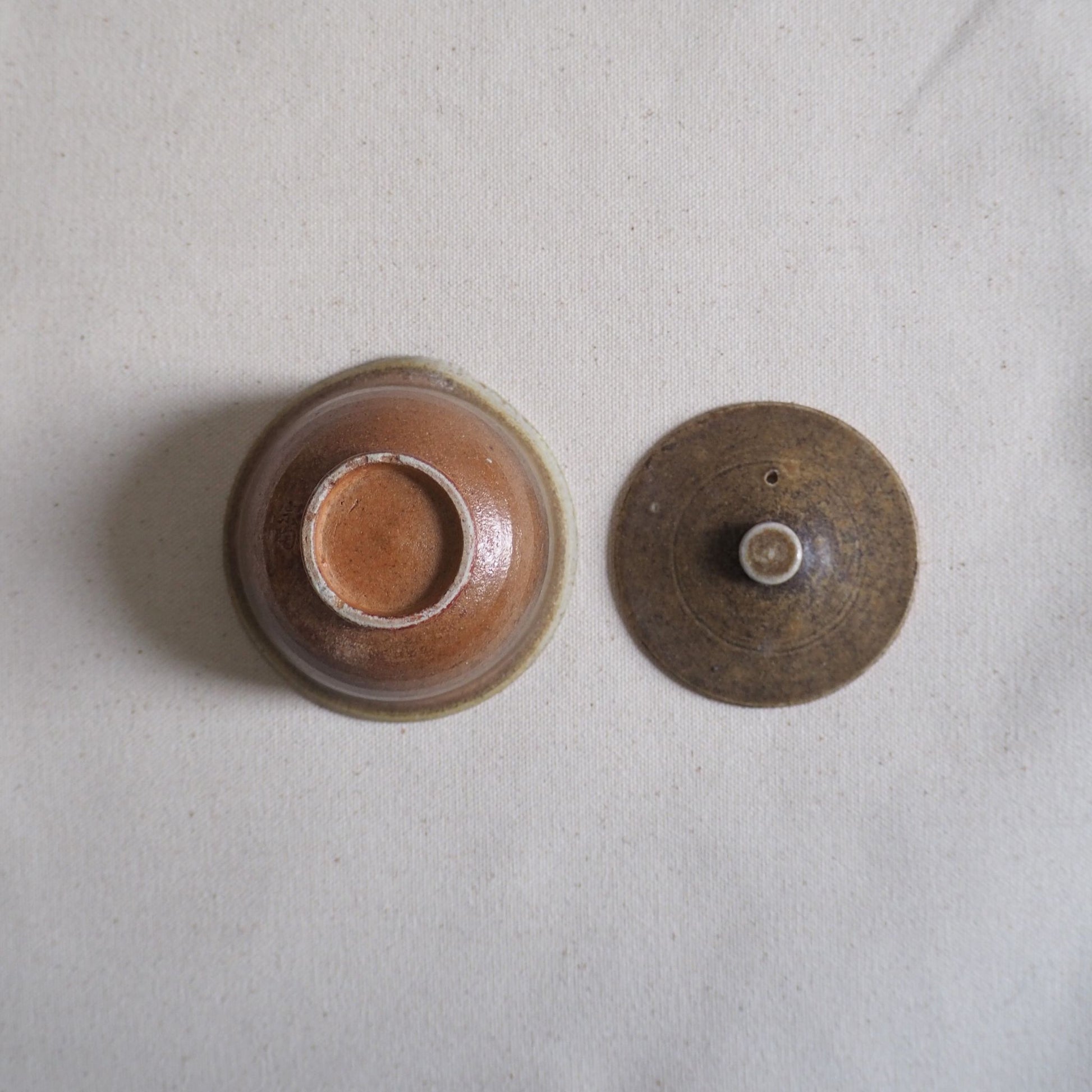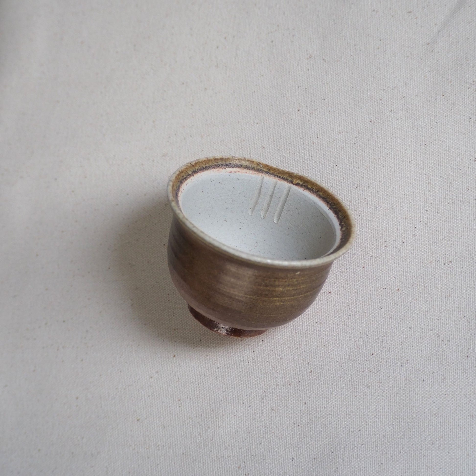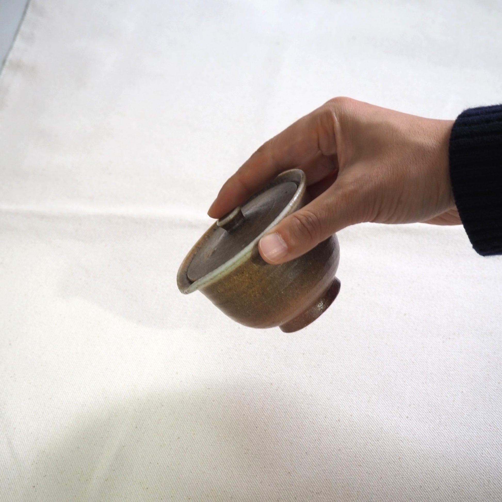 Each tea utensil is handcrafted on a potter's wheel, so there are lines on the sides of the vessel from the wheel-throwing process. The texture is pleasant and gives a real earthy feel. The inside is molded very smoothly. It features the soft look of natural clay. The color deepens with use, and one of the charms is that you can enjoy the changes over time.