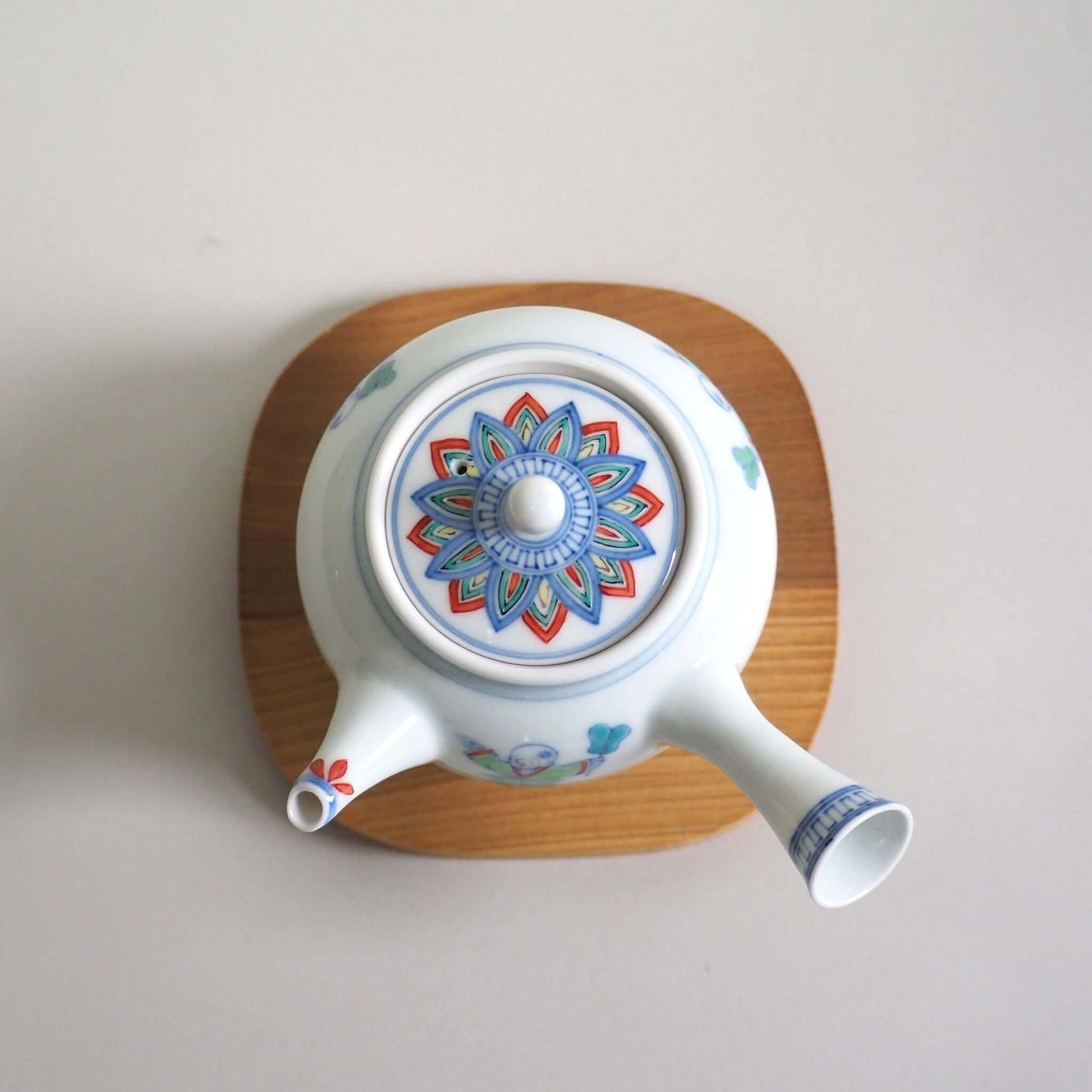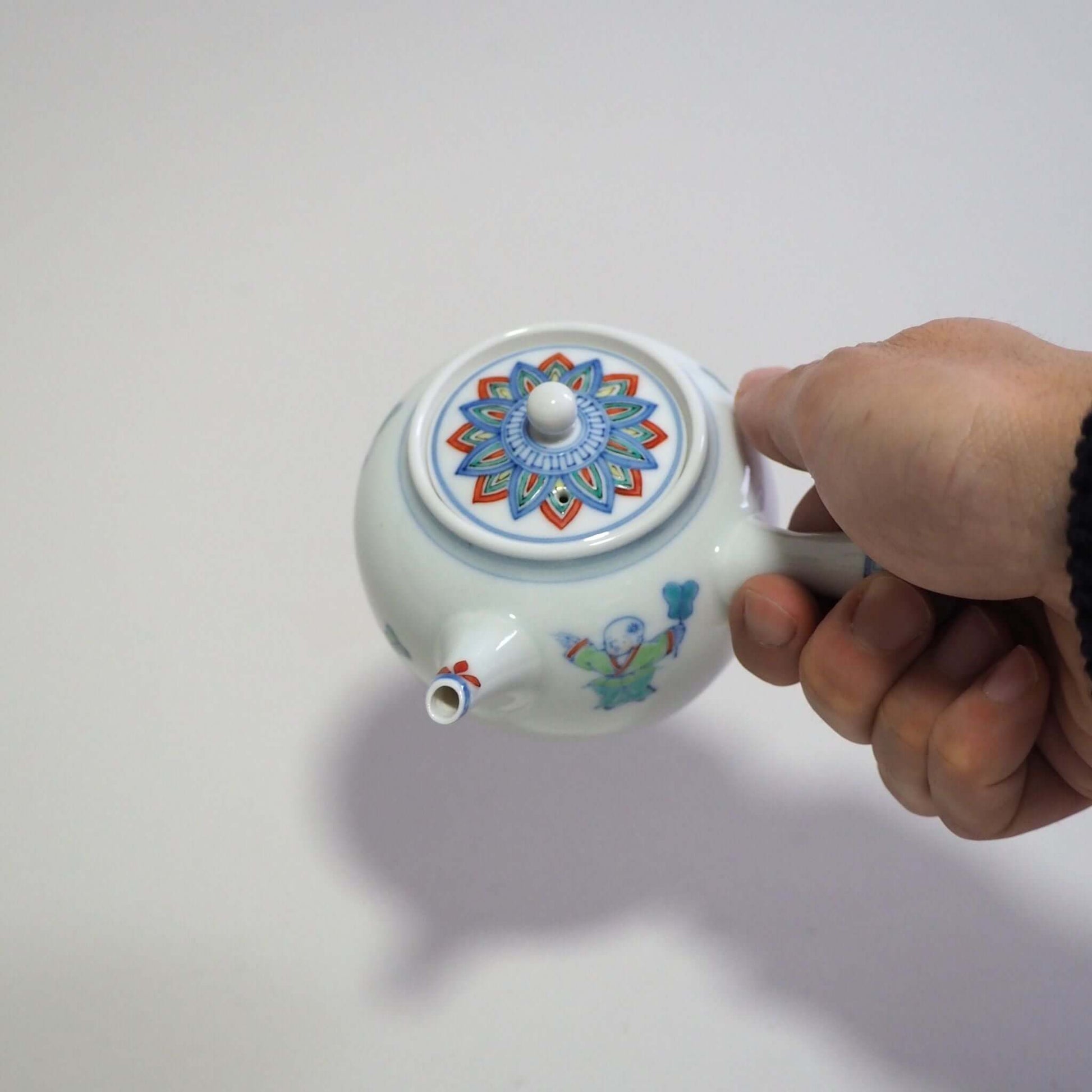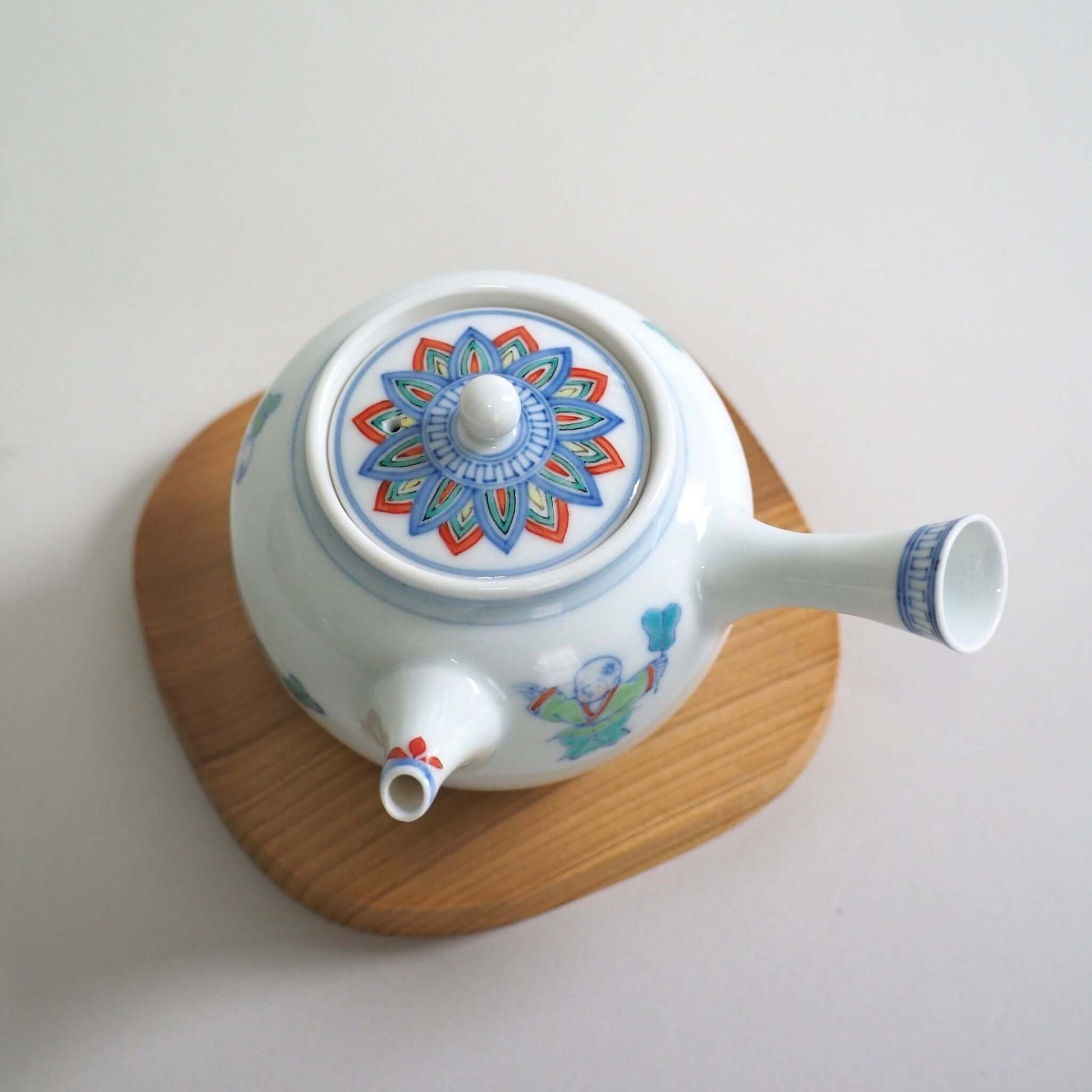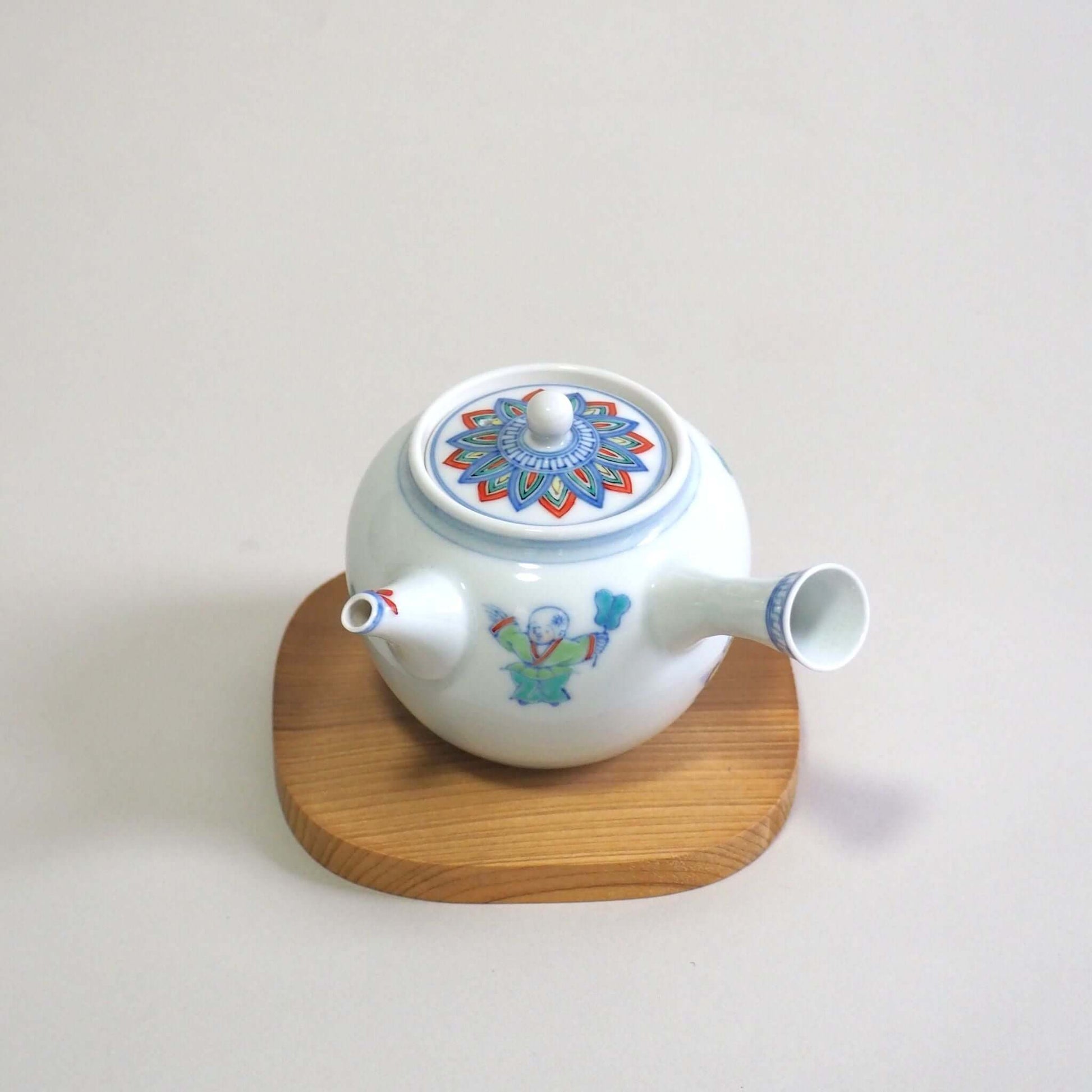 京焼窯元である昭阿弥の、淡彩唐子横手急須です。唐子文様は、中国の子供たちが遊ぶ姿を描いた伝統的な吉祥文様です。