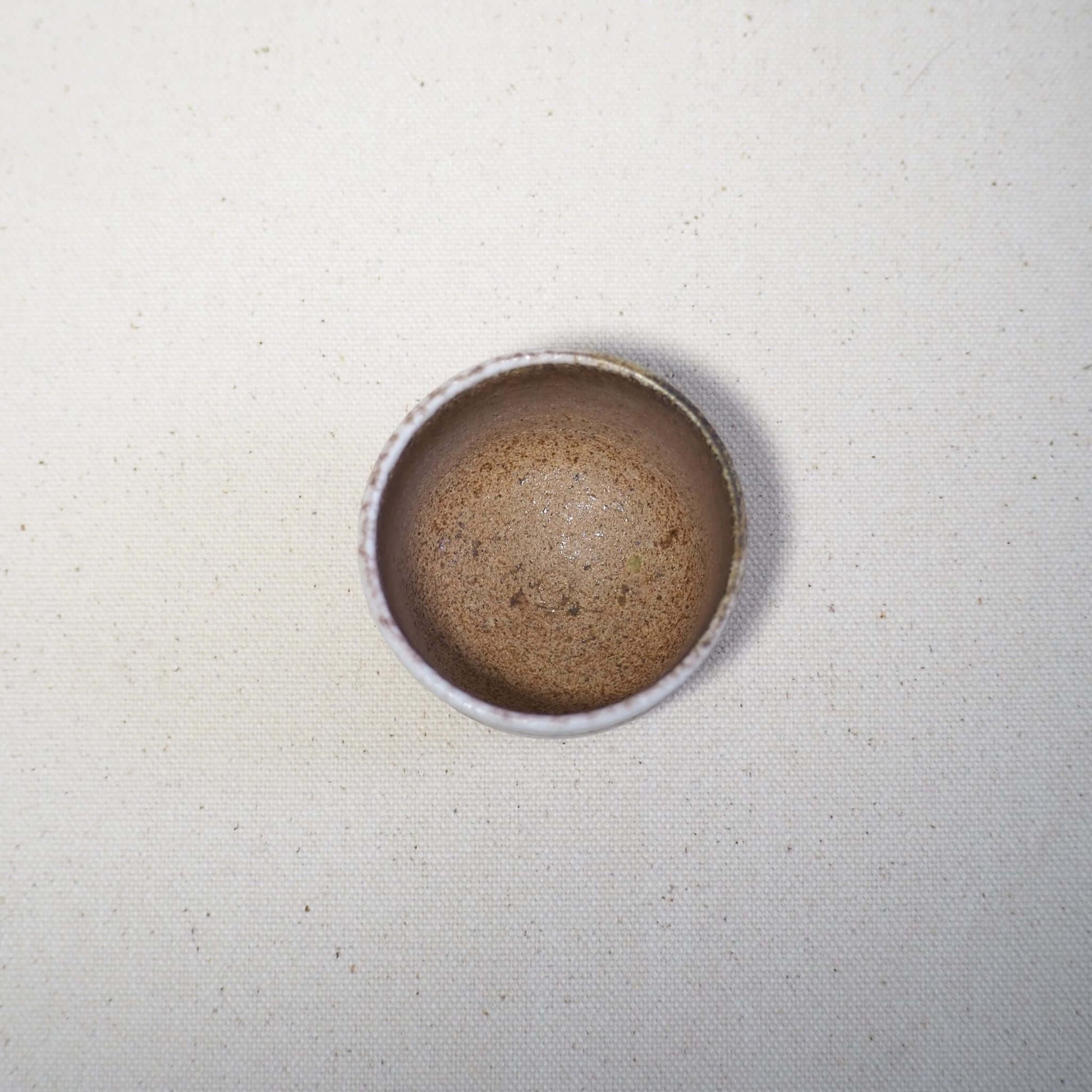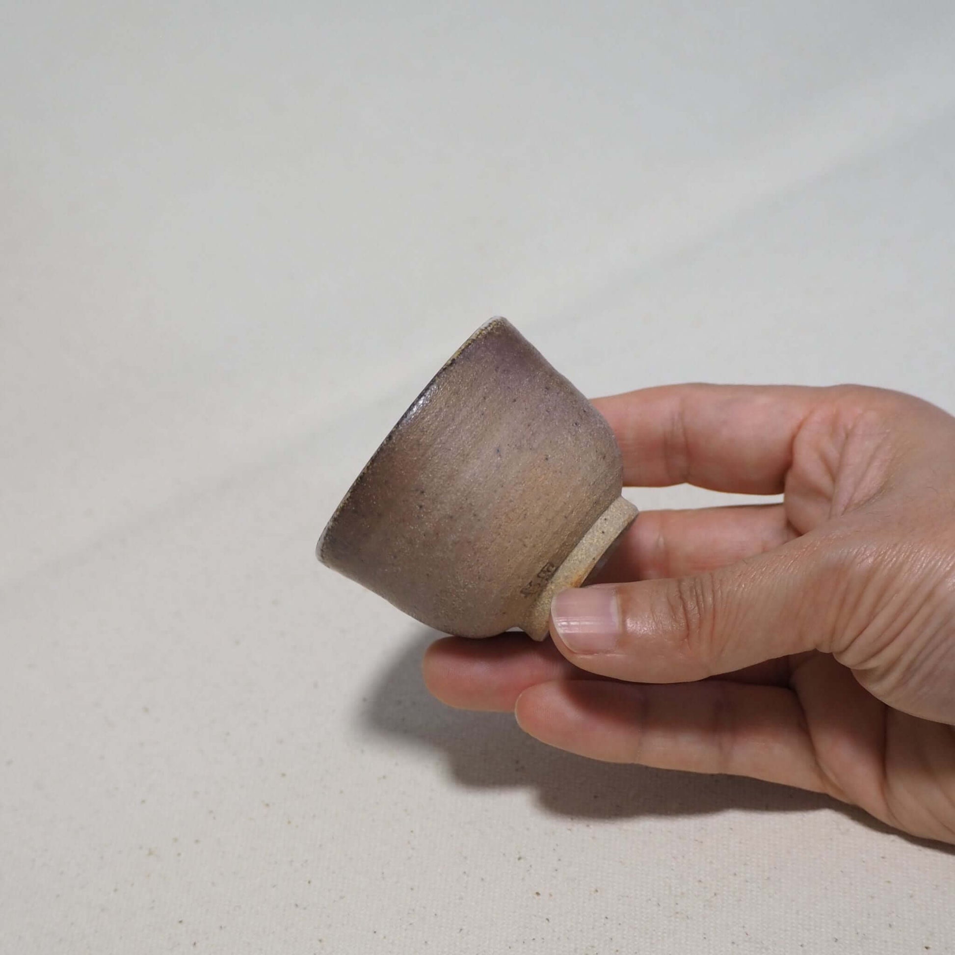 这是信乐烧陶艺工作室“外藤园”出品的煎茶杯,采用浅紫色釉面,并经过窑烧处理。